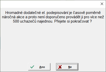 - podepisování je poměrně časově náročné, proto pokud je ve filtru více než 500 studií, je uživatel dotázán, jestli si přeje pokračovat: